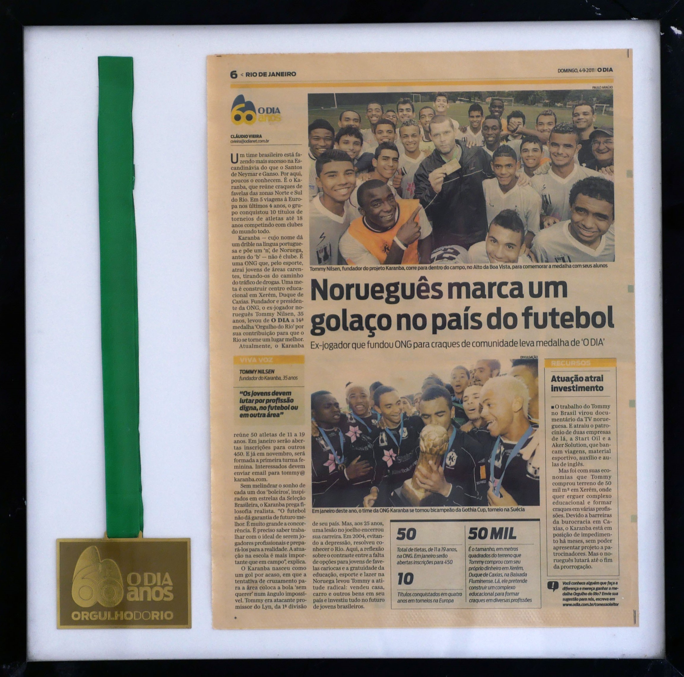 Karanba's founder, Tommy Nilsen, receives the 'Pride of Rio' award from the prestigious newspaper 'O Dia' for his work with Karanba. Karanba becomes the focal point at the world's largest football expo, Soccerex, in Rio de Janeiro.